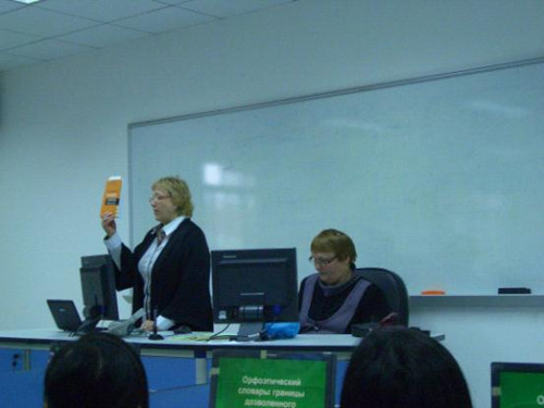 格里金娜从俄语修辞学与言语学的角度,详细地介绍了俄语词汇使用及修辞方式上的重点与难点,指出了几种常见的混用、误用现象。科诺瓦洛娃教授则从正音法的角度,介绍了俄语词汇的发音规律、重音位置特点以及语音和词汇来源的关系等。两位教授还通过现场解题与问答互动,使俄语系的学生参与其中,现场气氛十分融洽、活跃。乌拉尔联邦师范大学的几位教授对广外a片无码