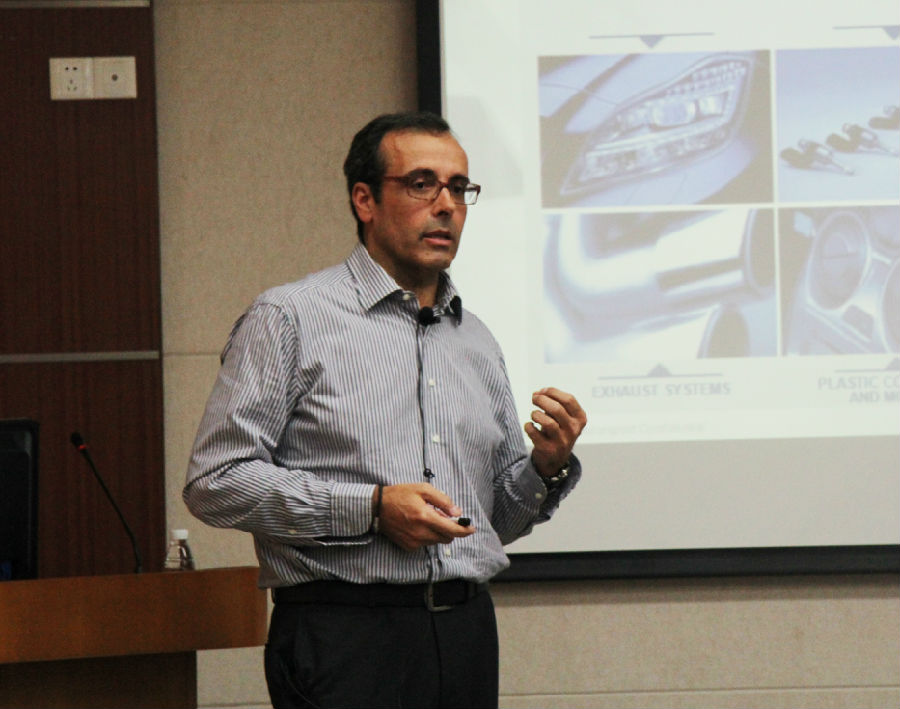 首先,理查雷利·拉斐尔先生为我们介绍马瑞利公司新研发的动力恢复系统,现在暂时用于F1方程式赛车上,以后也计划应用于民用汽车中。然后陆续介绍该公司的研发项目,逐步向观众展现一个力求创新的意大利公司。在观众的提问环节中,理查雷利·拉斐尔先生侃侃而谈,回答中讲到马瑞利集团在广东佛山,广东中山,义乌,上海等地都有生产设施,欢迎广外优秀意大利语人才加入马瑞利这个大家庭。