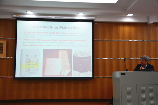 讲座开始前臧老师以幽默风趣的话语为现场人员介绍了本次讲座的主讲人文铮教授,文铮先生也向出席本次活动的嘉宾和学生致以衷心的感谢。针对本次讲座与文学和历史有关的主题,文铮先生先给现场人员介绍了自己参与编著和翻译的基本书籍,从而引入中意文学的交流。在中意文学交流的话题中,他提出了“意大利文学是什么时候进入中国?是通过谁?”这两个问题。通过《后汉书》中的记载,他给在座听众讲述了最早去到意大利的中国人甘英的经历,还与在座人员讨论马可波罗是否真正来到中国的问题,并举了几个例子说明人们对马克波罗来华真实性的疑惑,如“汉语、汉字、茶叶”等。文铮先生幽默的讲述方式使现场的气氛逐渐热烈起来。
