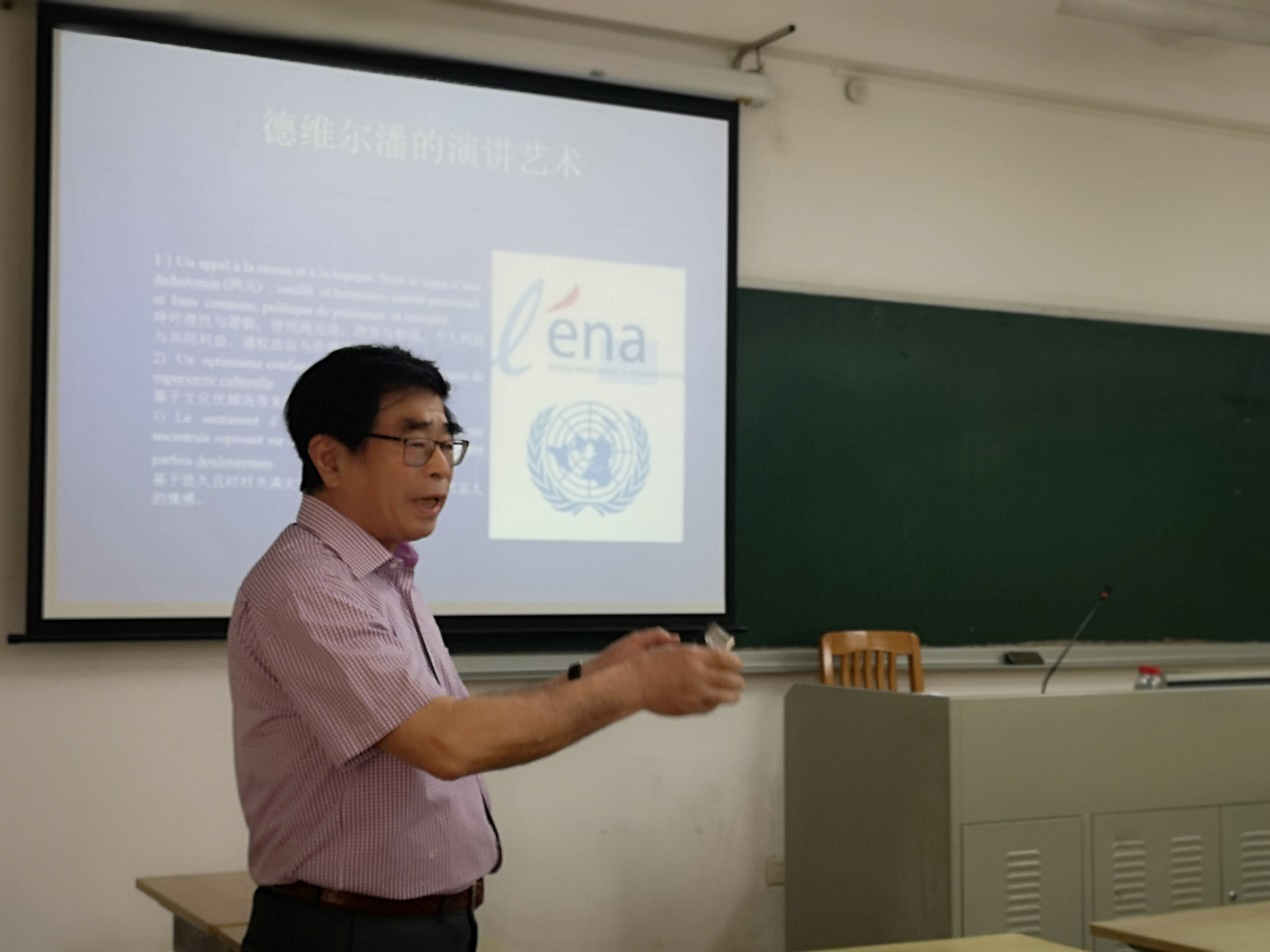 的师生带来题为“法国的没落和法国思想的枯竭”的讲座。李志清教授曾担任三届教育部大学外语教学指导委员会副主任委员,是山东省教学名师、国家级教学成果二等奖获得者、国家级精品课程《大学法语》主持人,主编国家级规划教材5套,担任法国7所大学的客座教授或博导,3次被法国政府授勋,是目前国内法语界唯一获得金棕榈教育与文化司令官勋章(最高奖)的学者。