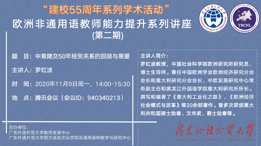 意大利语系师生带来了一场精彩的线上讲座。本次讲座的主题是:中意建交50年经贸关系的回顾与展望。