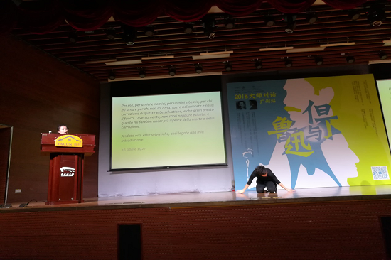 意大利语系大四学生陈婉霓声情并茂地朗诵了《神曲·地狱篇》的第一歌和《野草·题辞》的意大利语版,感染了现场观众。