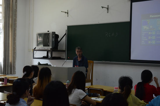 里德教授出生于英国,幼年移居法国,四十余年的跨文化交际经历为其研究提供了丰富的资源。讲座伊始,里德教授详细为大家剖析了法国“浪漫”之名的由来,他认为法国的风景、奢侈品以及人文关怀,都是促成其盛名的原因所在。随后他结合自身的经历及研究成果,向大家阐述了中法两国人民行为习惯的异同,及其形成的原因。里德教授指出我们必须要学会以不同的方式去看待世界,并以日常生活中一些诸如tu(你)和vous(您)的使用、衣着风格、预约文化等细节为例,具体介绍了法国人的等级制度、时间观念、风险管理、个人与集体关系等。最后,里德教授向大家介绍了法式工作观:travailler pour vivre(为生活而工作),法国人对生活的热爱、对人的重视,正是吸引里德教授定居法国的一大动力。