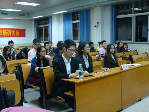 本次会议的主讲人有上一届西语团学学生会副主席冯卡瑜,12届学生会主席周忆秋,12届团委副书记金璐,12届学生会副主席郑明嘉。在金璐简短的欢迎词后,会议正式开始。首先马卡瑜讲述了三年里由一名普通的干事到副部长再到主席的经历,并指出团学就是一个锻炼与不同性格人沟通的平台,工作中要学会在压力中前进,处理好工作与学习的关系,丰富紧张的大学生活。另外,她还就工作实习方面结合自身经历给了许多宝贵建议。