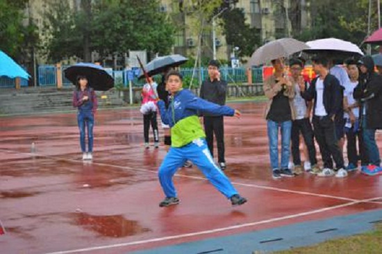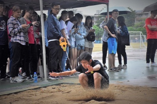 紧接着,女子跳远比赛正式开始,巾帼不让须眉,女运动员们猛地一跃,两腿向前伸展,在空中划出了一道弧线,在雨中留下了矫健的身姿。最终意大利语1501张莉同学获得第一名,希腊语1601黄宝愉同学和俄语1702卢人琳同学分别获得第二、三名。