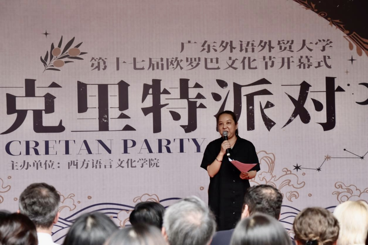 首先,院舞队的一曲《玛祖卡》为本次活动拉开了序幕。院舞队的成员们用曼妙的舞姿诠释着独特的西方文化,为在场观众带来了一场视觉盛宴。紧接着,歌声响起,一首来自院歌队的《一起向未来(多语种版)》结合广外特色,吸引了在场所有人的注意。随后,校体舞队为我们带来了《Savage love》,她们的青春活力和默契配合让观众眼前一亮,现场气氛也随之达到高潮。紧接着,党委副书记杨晓敏教授用中文和法语介绍了欧罗巴的历史和意义,并预祝欧罗巴文化节的成功。最后,在一片欢愉中,校党委副书记李云明宣布本届欧罗巴文化节正式开幕。