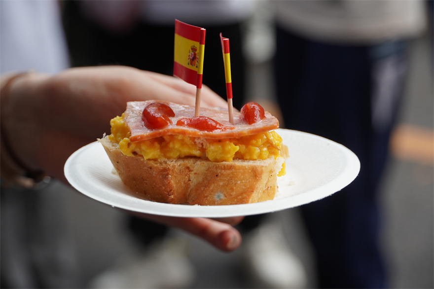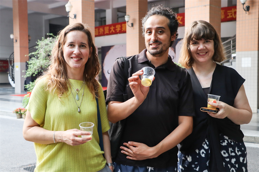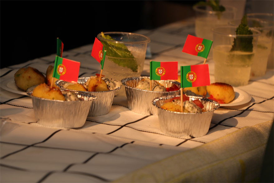 当天下午,校道两侧摆满了西语学子们精心准备的各国特色美食,它们色香味俱全,令人垂涎欲滴。不仅有来自俄语系的列巴和红肠,意大利语系的传统美味提拉米苏和气泡酒,还有法语系的法式焦糖布丁和芭菲等等。各语系学子大展身手,校道上萦绕着诱人的香气,满是欢声笑语。