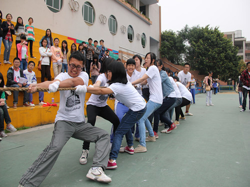 本次趣味运动会以放松身心、愉悦生活为主旨,采取竞赛形式进行,充分调动了同学们的热情,大家能够积极参与其中。运动会共分为两个项目,分别是拔河比赛和八人九足比赛。
