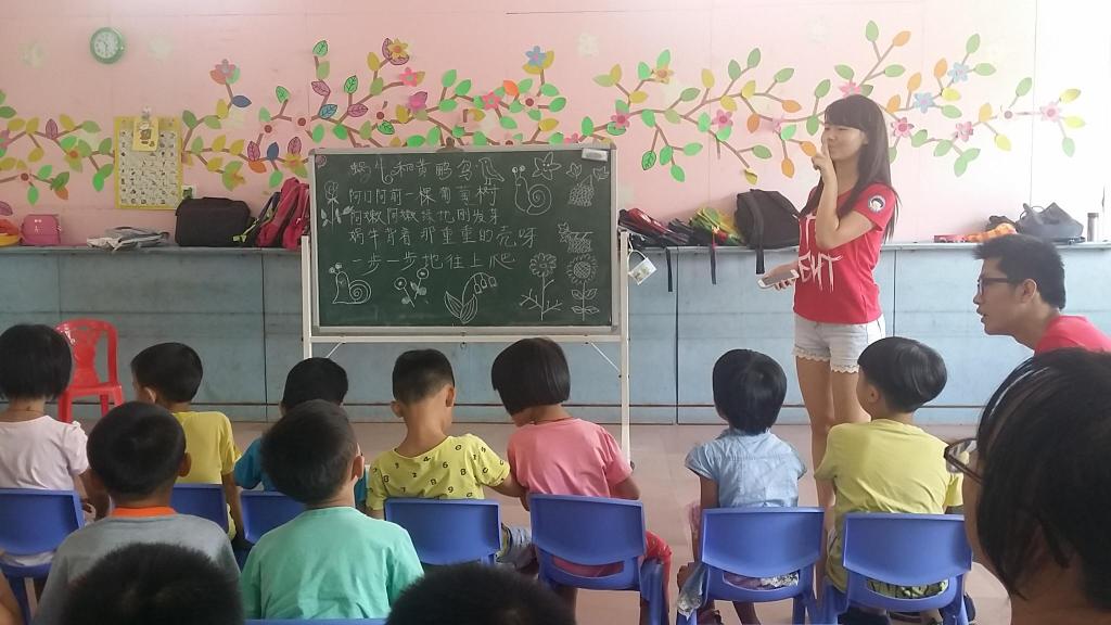 学生们大多是一年级,于是教学组便采取了寓教于乐的教学方式,让学生们在游戏中感受到学习的魅力。为了方便记忆,增加趣味性,负责教学的老师们还给自己取了外号,分别是西瓜哥哥、草莓姐姐、荔枝姐姐、葡萄姐姐和橘子姐姐。为了拉近与小朋友的距离,“水果”老师们在开学典礼后组织起了小游戏,例如夹乒乓球、蒙眼画鼻子、抢凳子。小朋友们都争先恐后地举起小手,踊跃参与,玩得不亦乐乎。