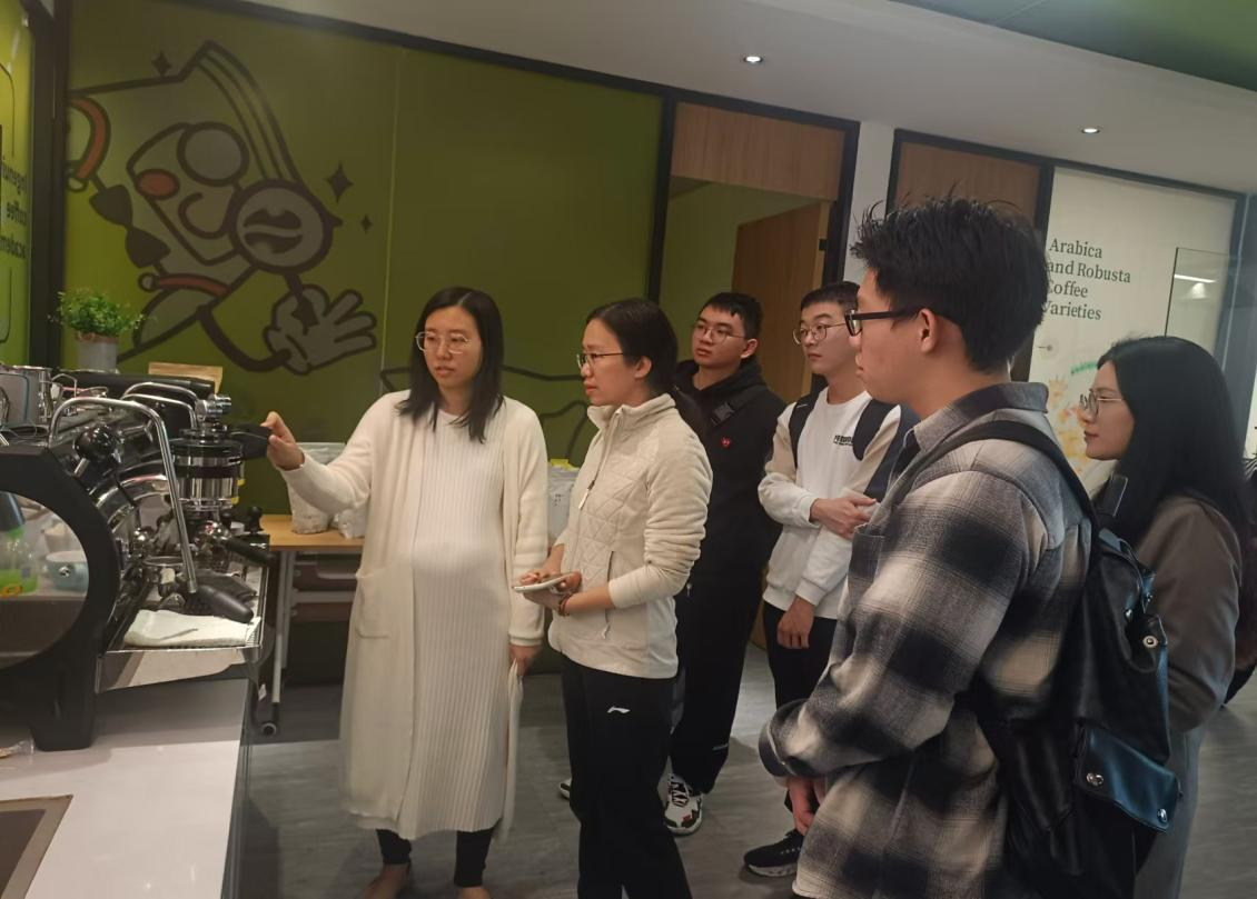 师生们还体验了咖啡培训课堂,感受一杯优质咖啡制作的全过程,从咖啡豆的挑选、烘培,到咖啡的萃取方法、时间,任何细微的差别都可能带来不同口味的咖啡。得知为满足不同客户对咖啡的不同需求,企业工作人员需要远赴各大洲、各地区实地寻找优质豆种时,同学们更加深刻感受到印格咖啡作为行业内优秀企业对咖啡豆品质的卓越追求与对待事业的精益求精。