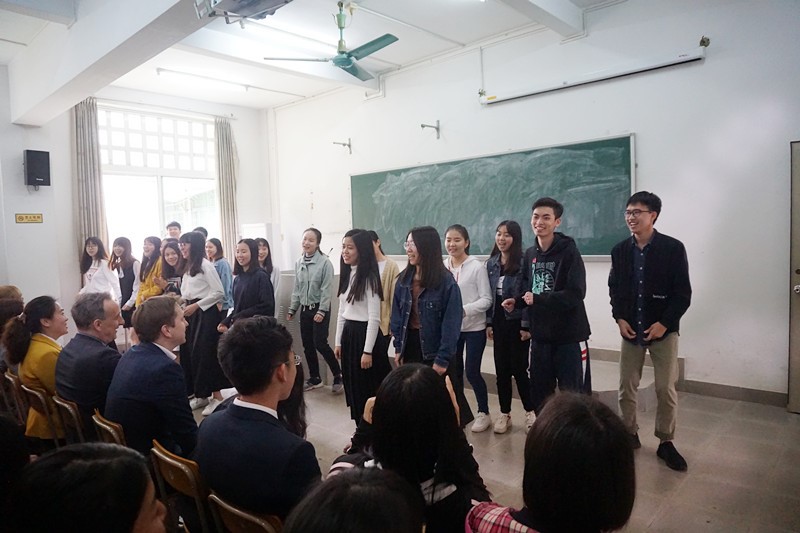 就进一步深化合作、推进“2+2”双学位项目进行了亲切会谈。院长杨可、波兰语系主任茅银辉、教学秘书宁少媛就该项目的细节与代表团进行了深入的讨论。会后,代表团与波兰语系的师生们举行了一场热烈的见面会,学生们为波兰客人表演了波兰歌曲,呈上了学生们自己编辑印刷的波兰文系刊。