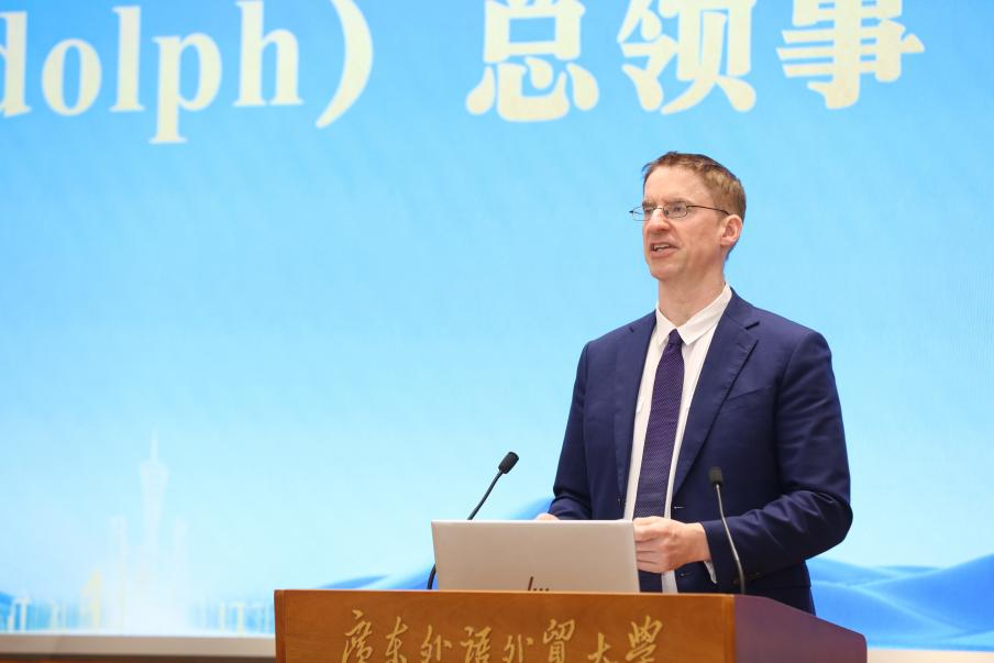 德意志联邦共和国驻穗总领事鲁彦(Jan Rudolph)先生在发言中指出,几十年来中欧关系长期稳定且不断向前,在政治、经贸、科技、气候变化等方面合作紧密。当今国际形势复杂多变,面临挑战日益增多,双方更应不断拓展合作领域,积极对话,增进理解,以推动中欧以及中德关系健康稳定发展。中欧合作具有强大内生动力与广阔发展前景。