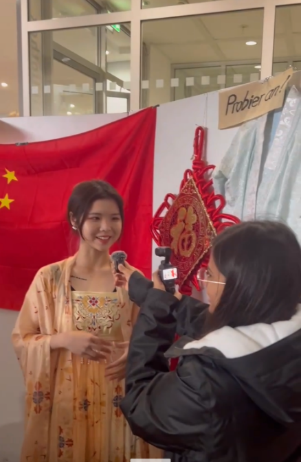 2024年11月5日,德国帕德博恩(Paderborn)大学举办了国际文化周活动,德语2022级学生杨淳奕等与其他中国留学生一起参与了中国摊位的筹备和展示。通过展示书法、茶艺、汉服和生肖文化等形式,同学们向来自世界各地的师生展示了中国传统文化。很多外国友人兴致勃勃地尝试用毛笔写中文名字,茶艺区吸引了不少人驻足品尝。汉服展示成为亮点,许多同学换上汉服合影留念,感受中国传统服饰之美。同学们还向大家介绍了中国生肖文化,许多人都对自己的生肖表现出极大兴趣。杨淳奕表示:“这次活动不仅加深了我对文化交流的理解,也让我为能成为中国文化的传播者而感到自豪。”