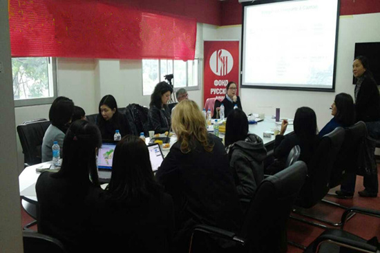 跨文化研究中心还在俄语中心举办了与法国达能公司合作研发项目的中期汇报讨论会。出席此次会议的有项目技术指导戴泽教授,达能中国相关部门负责人,跨文化研究中心的老师和学生。法语翻译硕士生和法语语言文学硕士生为此次研讨会提供了翻译服务。