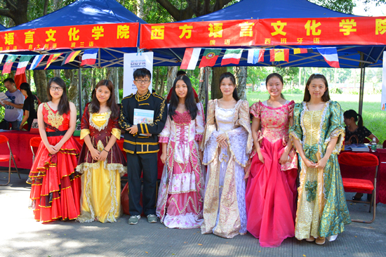 和各专业的详细介绍。七名穿着欧洲传统特色服装的工作人员站在摊位前热情地向学生和家长发放a片无码