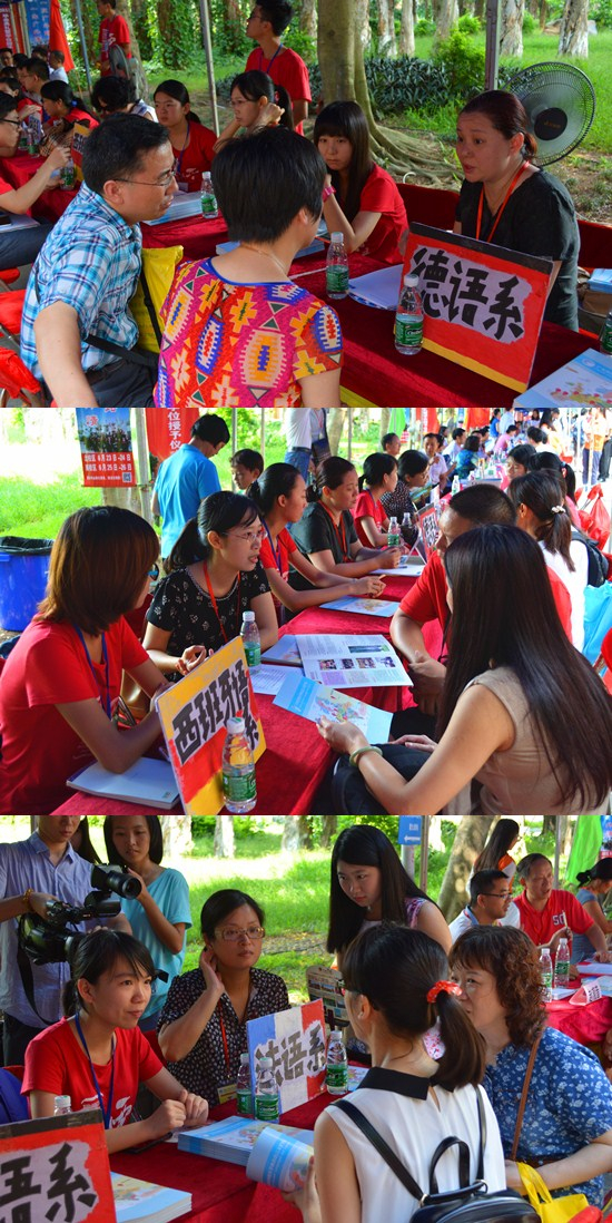 的摊位进行咨询,对于家长们提出的关于小语种学习、出国交换机会、就业前景等各方面问题,各专业老师一一为大家耐心和客观地进行解答。