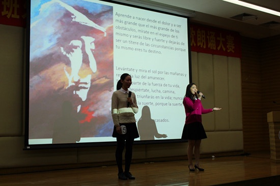 比赛期间,受邀前来的来自暨南大学华文学院以西语为母语的留学生们为大家带来精彩的诗歌朗诵展示。