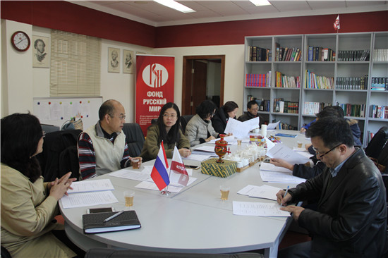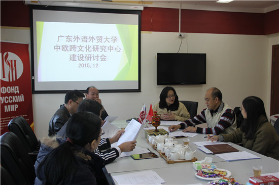 “中欧跨文化”研究基地在北校区四教320俄语中心召开了2015年建设研讨会。会议由基地主任杨可教授主持,指导专家英文学院温宾利教授、外文中心张进教授、校科研处李海琳科长以及基地全体成员(除一人在国外访学)出席了会议。