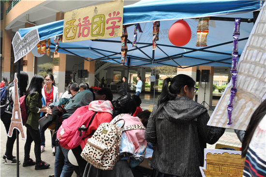 各语系美食摊位各具特色,如法语系的美味烘焙和鸡尾酒,意大利语系的意大利面和现磨咖啡,德语系的黑啤酒配红肠,西班牙语系的特调和土豆饼,俄语系的伏特和巧克力,葡萄牙语系的营养披萨和三文治,波兰语系的棉花糖……美味的食物散发诱人的香味,引发了各个学院师生和外国友人的驻足品尝。此外,还有外国友人助阵摊位,即兴弹奏音乐,各摊位成员倾情走动宣传美食,现场洋溢着欢乐和谐的气氛。