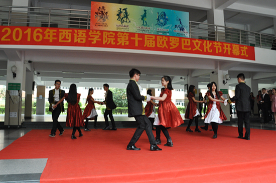活动当天,晴朗明媚的天气与同学们的热情参与相得益彰。经典院舞《赛思莎》为开幕式掀开了帷幕,欢快洋气的欧式舞步踏出了欧罗巴大陆的优雅风情,赢得观众的阵阵掌声。随后,来自各语系同学用动听的小语种歌曲带领现场观众走进七国的音乐世界,体会各具特色的语言魅力。接着,院舞队精彩华丽的乡村舞也诠释了浪漫的欧式风味。最后由a片无码