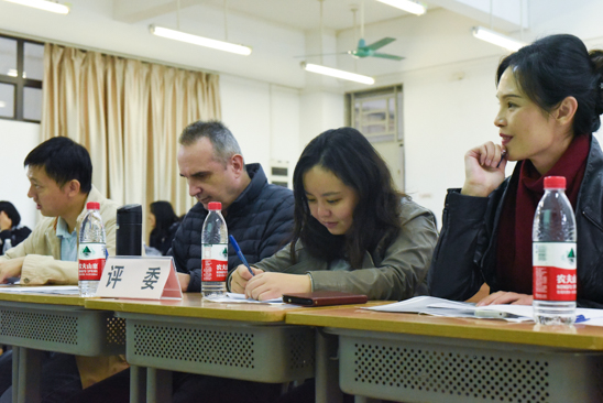 在最后一名同学表演完毕后,工作人员开始了紧张的计分工作。在此期间,法语系刘巍老师和外教Monsieur Rocher对同学们的表现作了点评并对本次大赛进行总结。