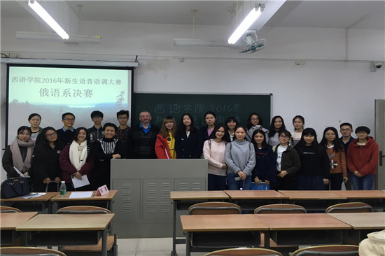 11月24日,俄语系新生语音语调大赛在北六教B306举行。出席本次大赛的评委有俄语系的郭利老师和俄语系外教Джалиль老师。经过初赛的激烈角逐,共25名选手进入决赛。