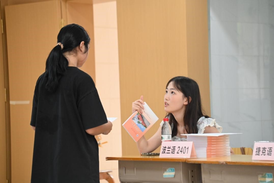 学院内横幅高挂,处处洋溢着青春的气息和欢迎的热情。西语团学工作人员、朋辈导师和志愿者们身着红色院服分布在校道、教学楼、宿舍楼等场所,为西语新生提供答疑、指引、运送行李全方位迎新服务,确保学生无障碍完成入住、报到的各项手续,帮助新生快速熟悉校园的各个角落,充分体现了“服务西语,承载西语”的精神。