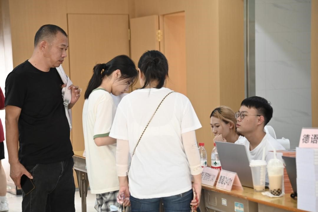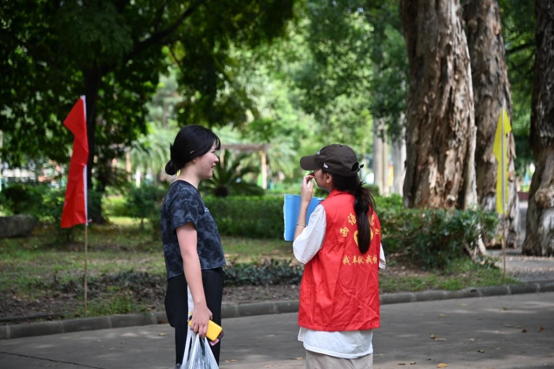 迎新工作人员在第四教学楼集合,做好各项准备工作之后,等待着迎接2024级入学新生。