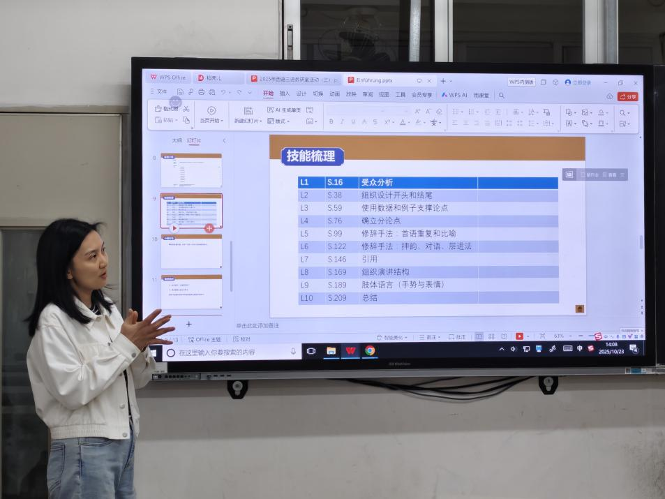 “三进”演讲系列课程教研室在第二教学楼204教室举办了题为“案例共研,教法共生——演讲课教学难点突破与实践创新”的案例研讨工作坊。