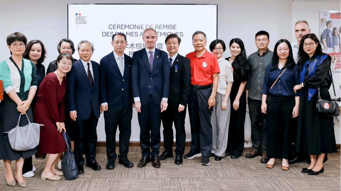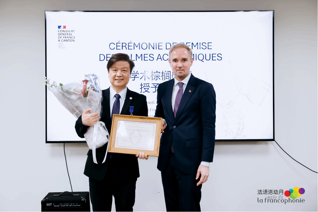 3月28日,法国学术棕榈骑士勋章授勋仪式在广州法语联盟举行。法国驻广州总领事罗宏灵(Laurent Legodec)代表法国国民教育部授予a片无码