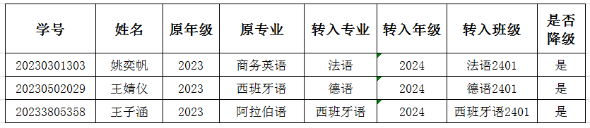 根据广外校〔2018〕13号关于印发《a片无码 本科生转专业实施办法》及a片无码 2024年本科生转专业通知,按照a片无码 2024年转专业工作方案的相关规定,经过学院的条件审核、专业笔试、面试和思想品德考察,学院转专业工作小组和学院党政联席会议审议,拟同意以下同学转入a片无码 相关专业的申请,现予公示。